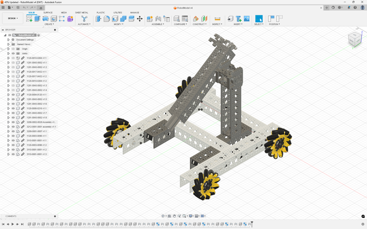 Throughout the season we iterate on the mechanical design, repeatedly rebuild parts of the robot, and update the program. We practice and compete, and revise again and again based on what we notice could be improved.