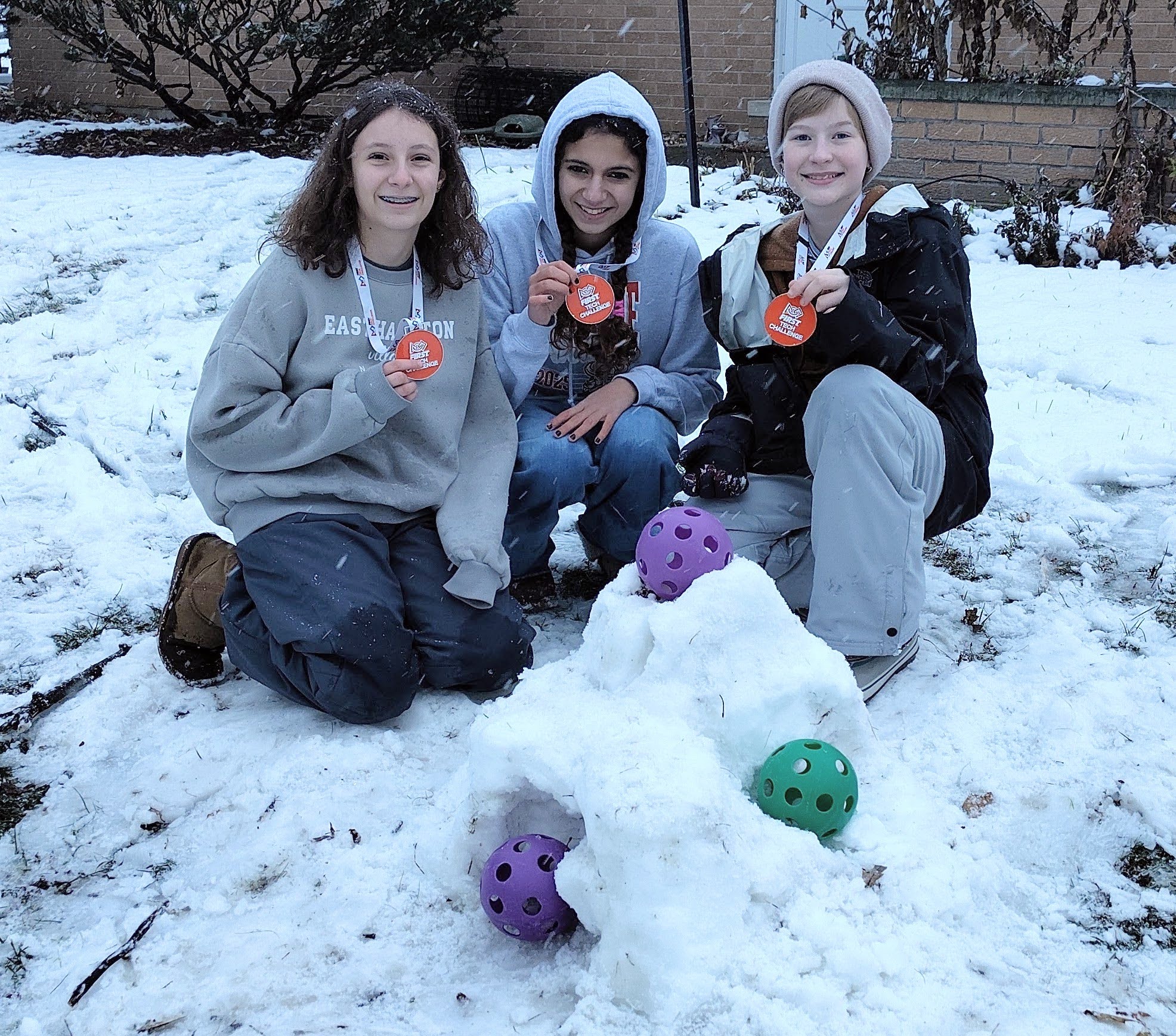 The practice following the team's success in winning the Inspire Award in Midland (and qualifying for the State competition!), the team took advance of an early snowfall to build a replica robot from a material they had previously overlooked. Unfortunately, as head coach I had overlooked the ROBOT Construction Rules that clearly wouldn't permit their replica to be used in actual competition.