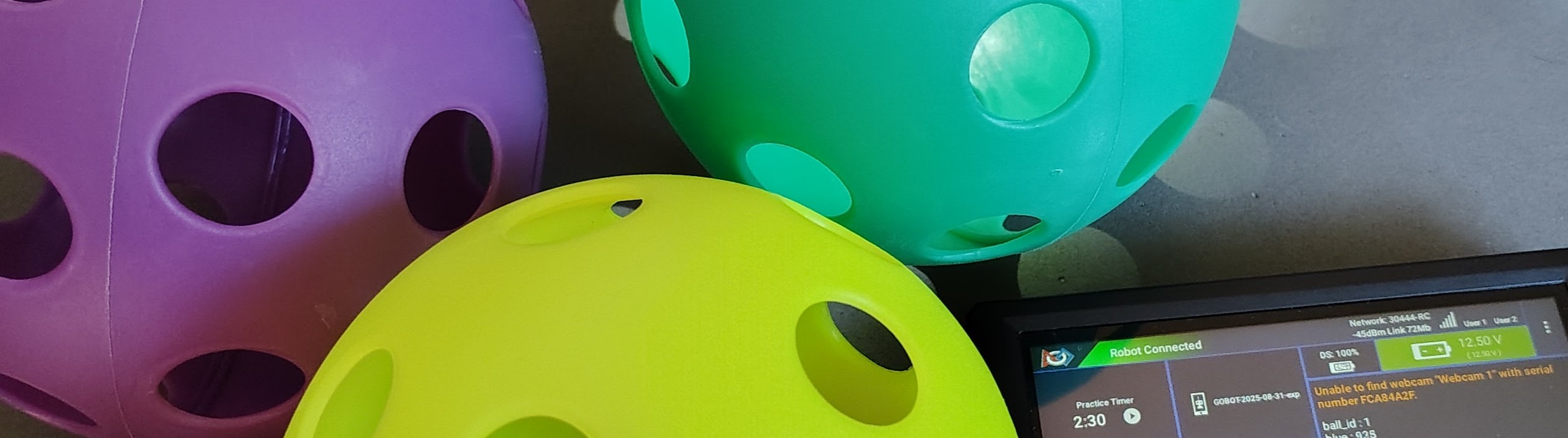 The second case is that the raw color values have some overlap. To make them stand out more, we found that dividing green by red cleanly separated the green ball from the purple and yellow balls (yellow being the "fuel" from the 2017 FRC challenge). Our rule for green is if green/red is greater than 3, then the ball color is green. We assigned that an ID of 1.